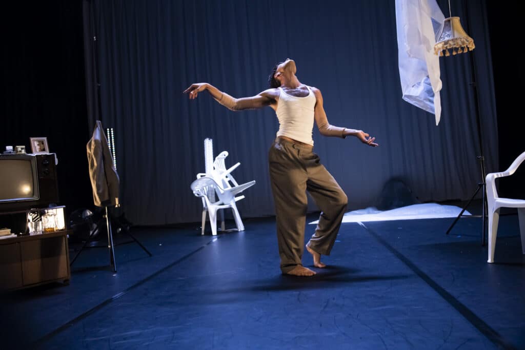 Antoine Findeli, or Flame, grows up between Montréal and Europe in a Franco-Egyptian family. His childhood is a happy but turbulent one: he changes schools 6 times, travels a lot, and adapts to being uprooted. He has a queer childhood in a family where homosexuality is still taboo and stigmatised. At the age of 12, he starts dancing. He finds in movement a way to express himself and calm his nerves. Since then, he explores the plurality of movement and the possibility of expressing with the body what words cannot say. His artistic training includes 15 years of self-taught urban dance (house and waacking), a circus school in France, and a physical theatre school in Brussels. In his work, he approaches dance like a mother tongue that feeds on second languages: it is his main practice, and he draws inspiration from other performing arts to bring it to life and renew it.