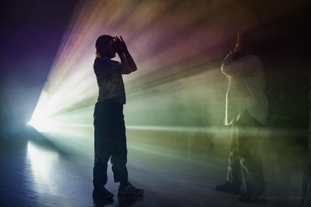 LABORARE est un collectif fondé par Marine Theunissen et Raphaël Dely. Formée en théâtre, Marine est artiste-chercheure, metteuse en scène et chorégraphe. Raphaël crée des jeux expérimentaux et conçoit des environnements interactifs et immersifs en arts numériques. Ensemble, iels créent en explorant les relations entre humains et non-humains (technologies, environnement, phénomènes naturels, animaux), à l’instar de l’œuvre Effet d’Entraînement (Tangente, 2023). Leur approche artistique est résolument interdisciplinaire et se construit à partir d’entrevues avec des experts, d’enregistrements vidéo ou sonores et de données collectées.